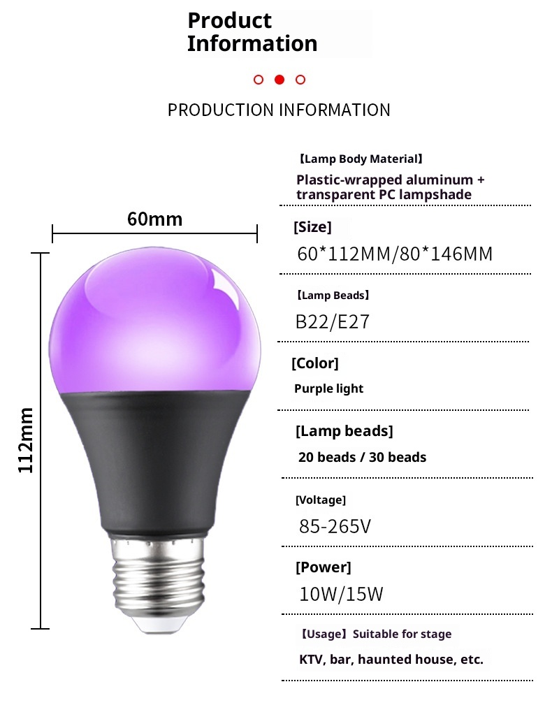 A19 Purple Light Bulb Led Energy Saving Super Bright