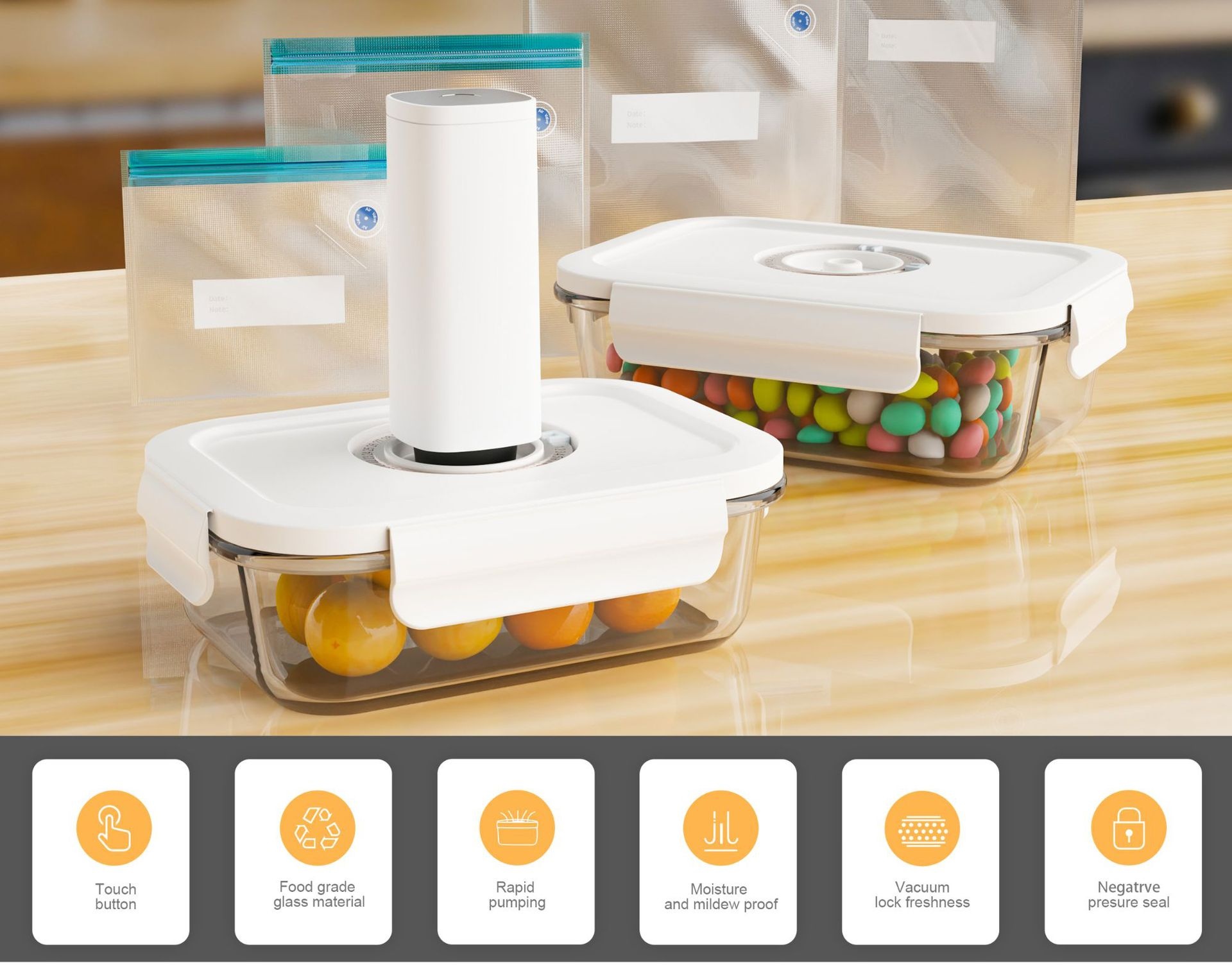 Electric Vacuum Food Sealed Glass Crisper